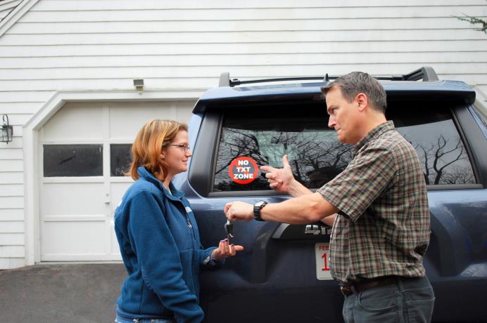 NO TXT ZONE Stickers remind drivers to obey the Massachusetts
